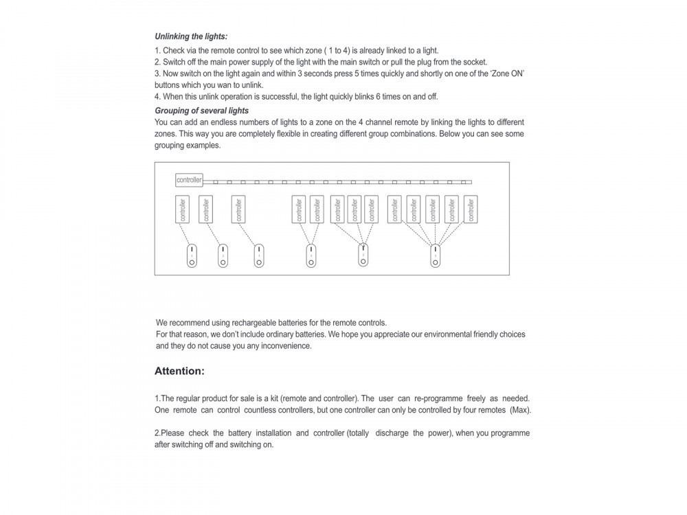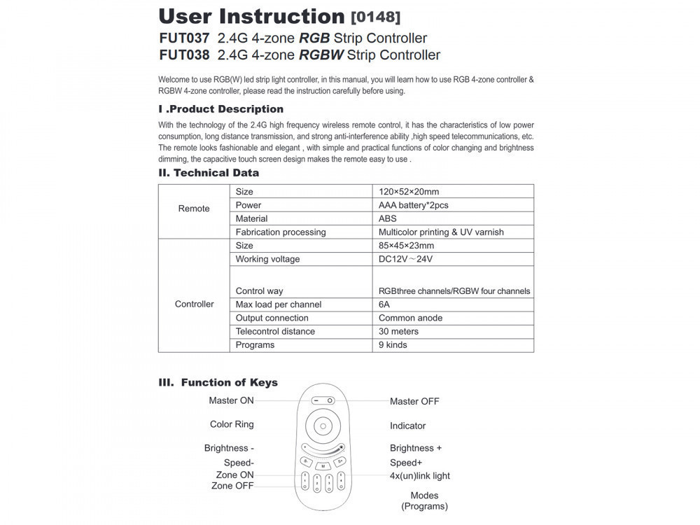 Csak vezérlő! A működtetéshez RGB csoport távirányítóra is szükség van. Egy vezérlő egy önálló RGB LED csoport (zóna) működtetésére alkalmas. Több vezérlővel maximum 4 db, egymástól független zóna alakítható ki. Az eszköz, beállítást nem igényel. Mindösszesen a tápfeszültséget és a vezérelni kívánt RGB LED szalagot kell a vezérlőbe csatlakoztatni. A hangolást a külön megvásárolható RGB csoport távirányítóval lehet elvégezni.